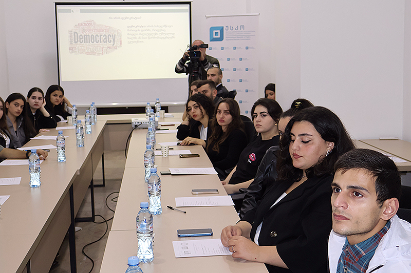 დღეს უსკოში სტუდენტებს არჩევნების მნიშვნელობაზე კომისიის თავმჯდომარე - პარმენ ჯალაღონია ესაუბრა.